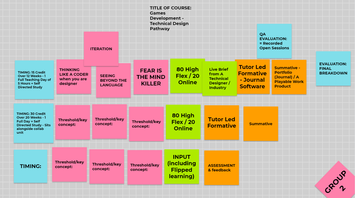 - Input (green) card is used to identify content types, learning activities, delivery modes (e.g. blended, online, etc.) as well as study modes (e.g. group work, self -study, peer-to-peer interaction). Guest speakers are also represented as input green cards.